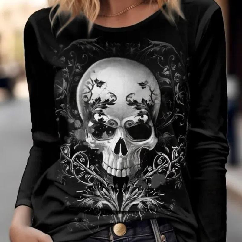 Женская футболка с длинным рукавом с рисунком черепа ужасов, топы, новинка 2023, модный топ с рисунком черепа ужасов, забавный пуловер в стиле Харадзюку — купить товар онлайн с бесплатной доставкой по всему миру!