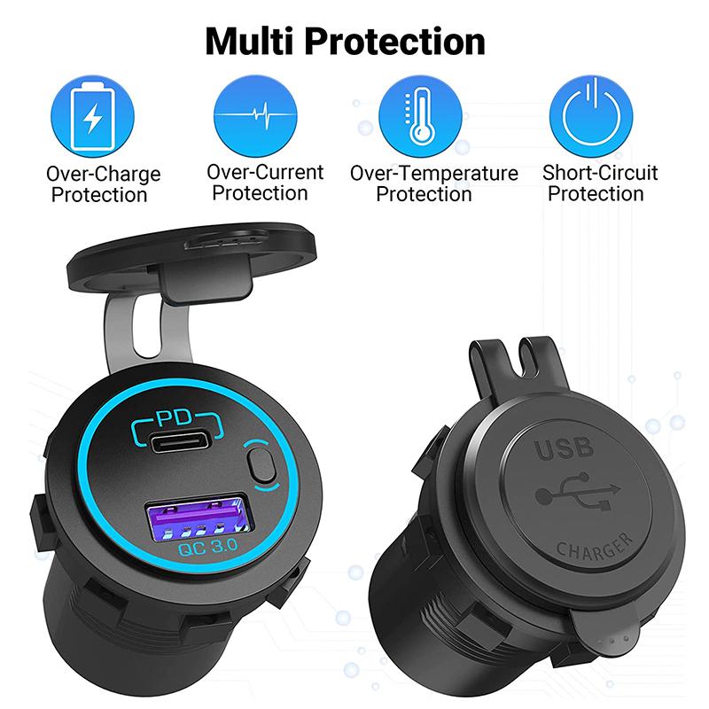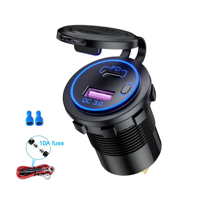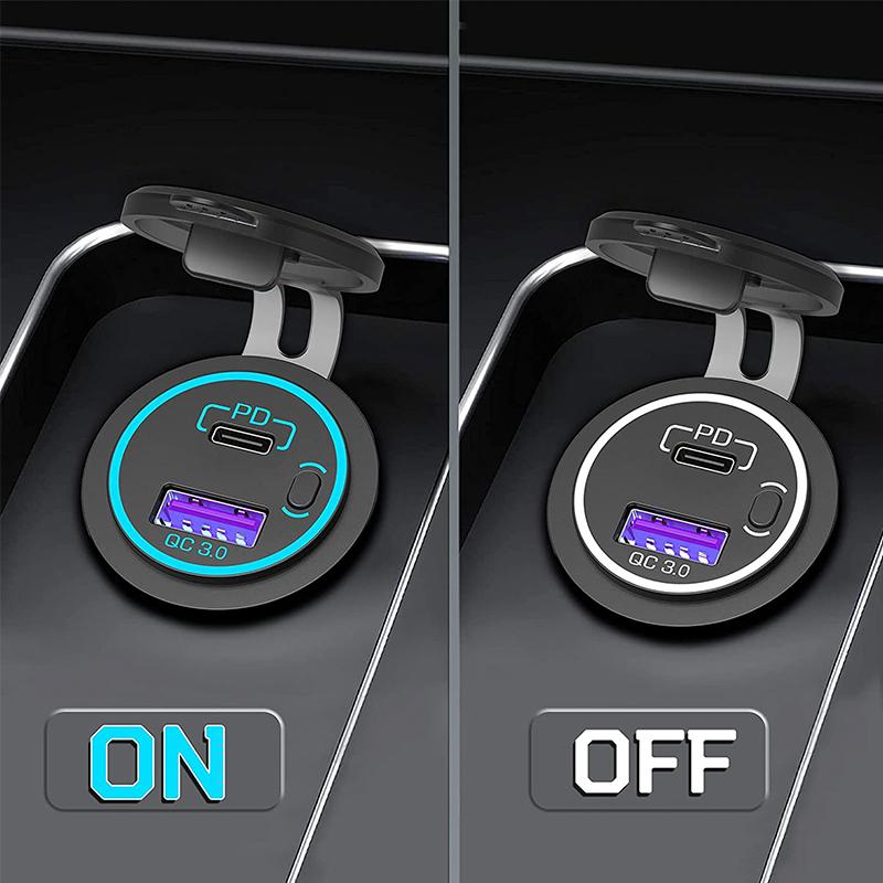 48 Вт USB-разъем для зарядного устройства, водонепроницаемый адаптер для быстрой зарядки PD Type C и розетка QC3.0 с переключателем для автомобиля, морского мотоцикла