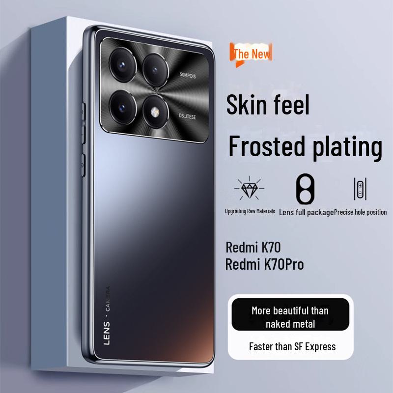 Кейс Redmi K70 AG с матовым электропокрытием, высококачественным металлическим объективом и мягкими краями для защиты.