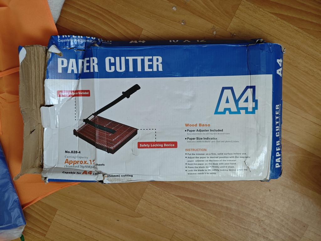 Дополняю. Как же мне понравилась эта штучка, замечательно режет. Есть прорезиненные ножки, вся штучка не скользит по столу. Нож в резаке острый, я думаю, что можно будет и 34листочка резать. На видео я нарезала полиэтиленовые пакетики на поделку, так вот, прорезает сразу по 4 пакетика в восемь сложений. Режит сразу с первого раза.