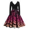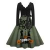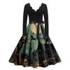 Хэллоуин Женское Повседневное Модное Платье с V-образным Вырезом и Принтом В Винтажном Стиле