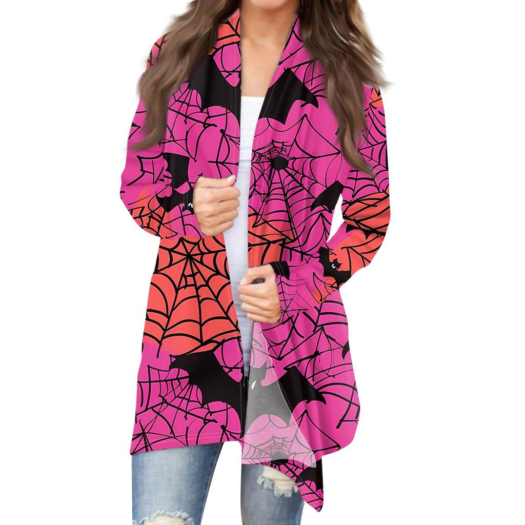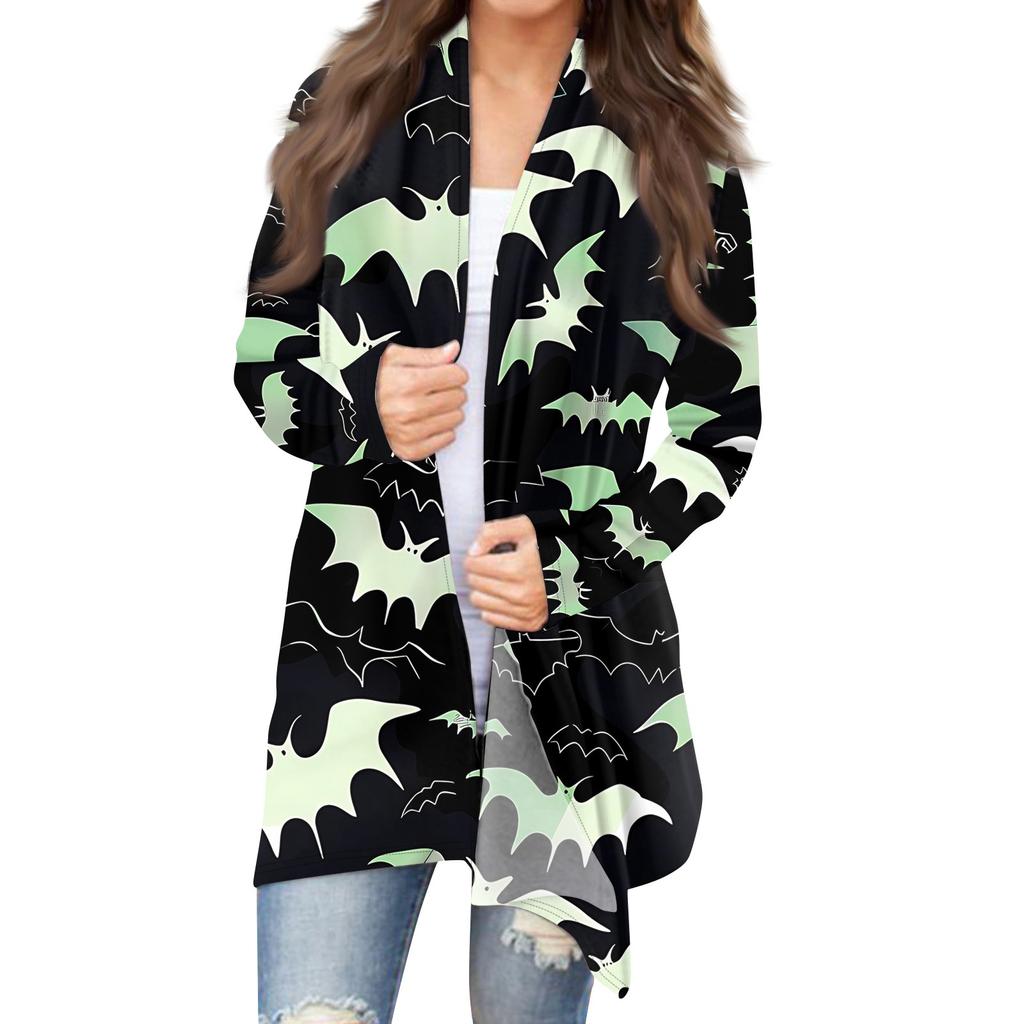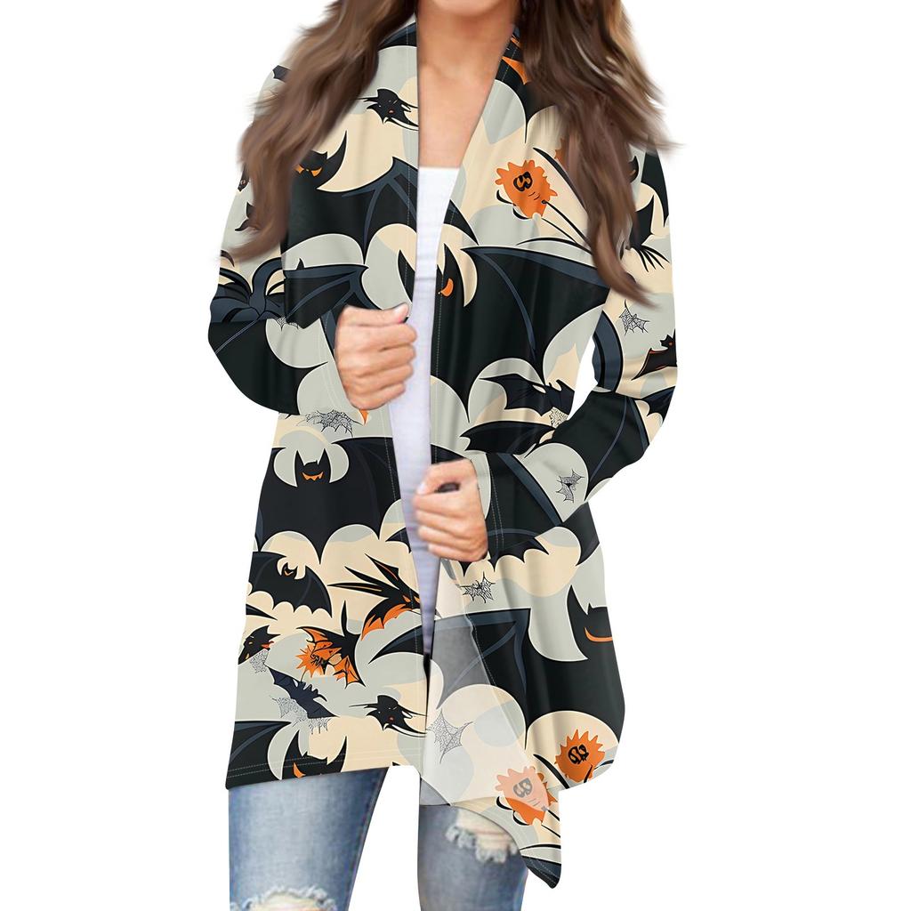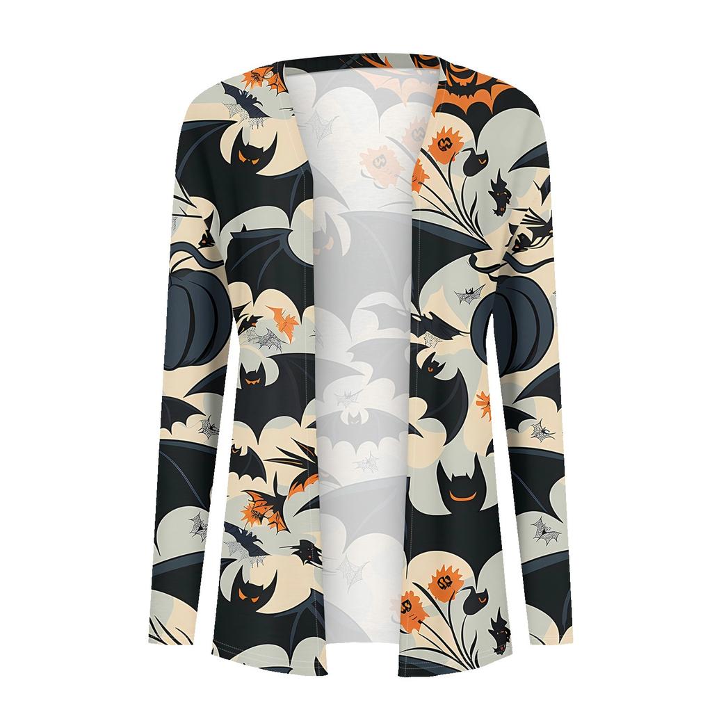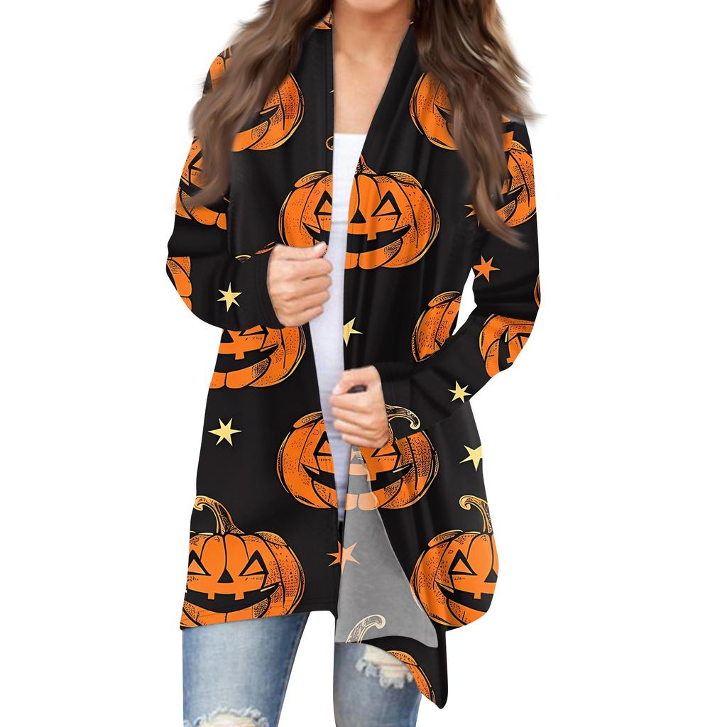 Женский кардиган с длинным рукавом спереди и принтом на Хэллоуин, легкая куртка