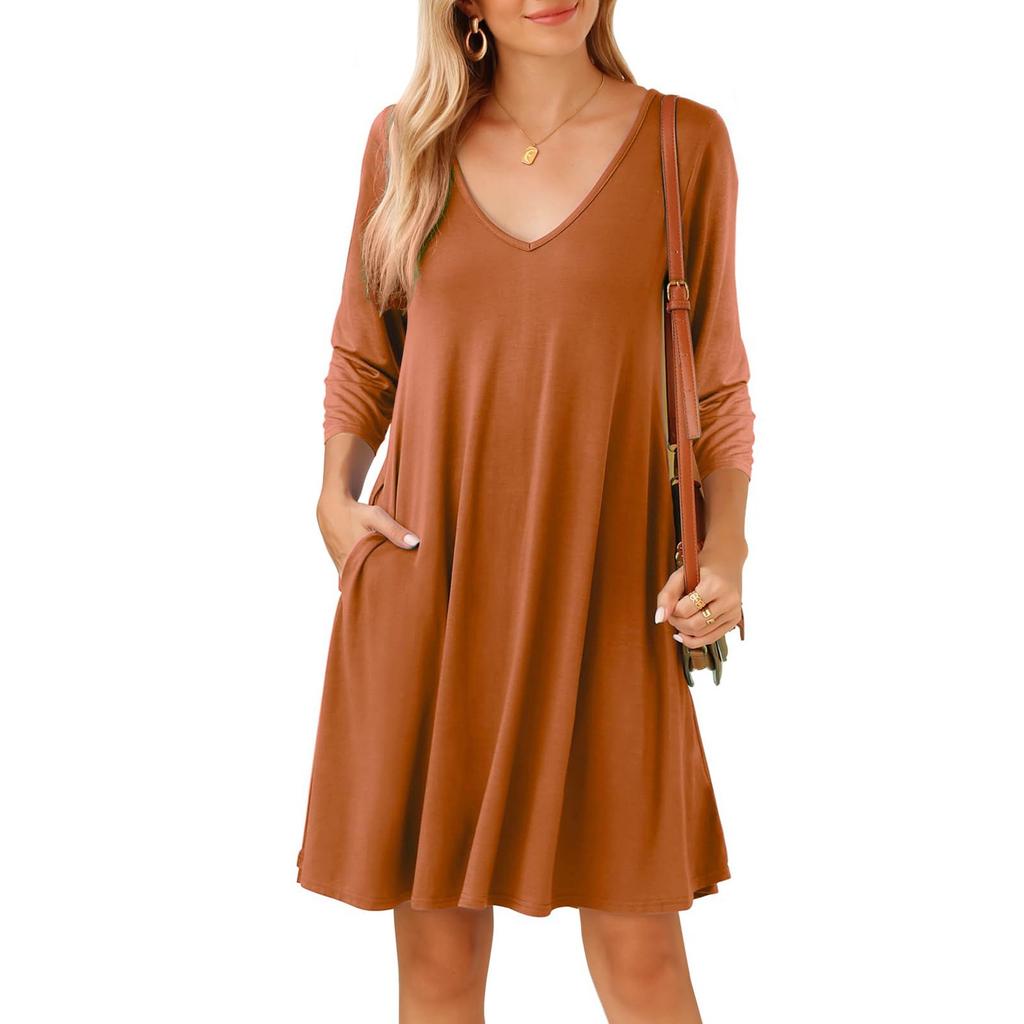 Женские повседневные осенние платья с рукавом 3/4 и V-образным вырезом, футболка, длинное платье-туника больших размеров