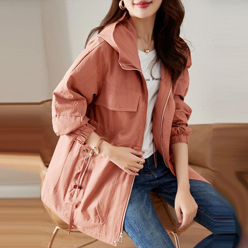 Модная женская куртка больших размеров для весны и осени, длинная повседневная куртка для женщин среднего возраста, большой плащ с капюшоном
