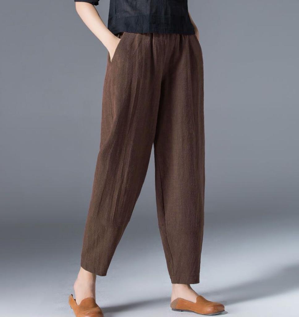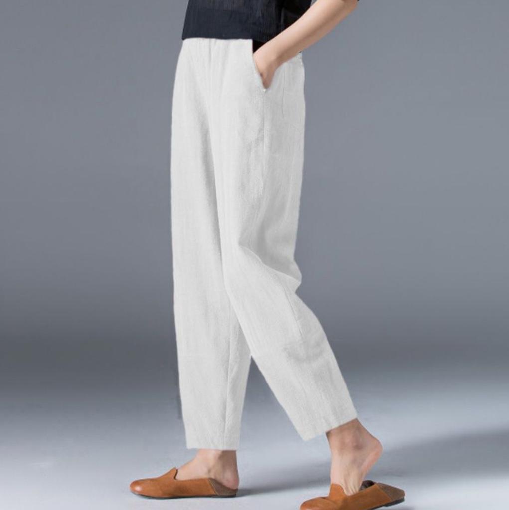 Хлопковые широкие брюки женские свободные однотонные шаровары летние повседневные брюки с эластичной резинкой на талии длиной до щиколотки женская одежда