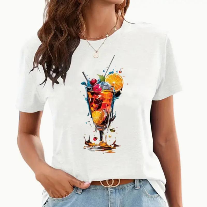 Модная женская футболка с принтом фруктового сока, забавная повседневная футболка с круглым вырезом и короткими рукавами, летняя женская футболка — купить товар онлайн с бесплатной доставкой по всему миру!