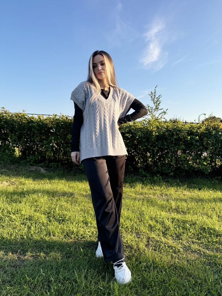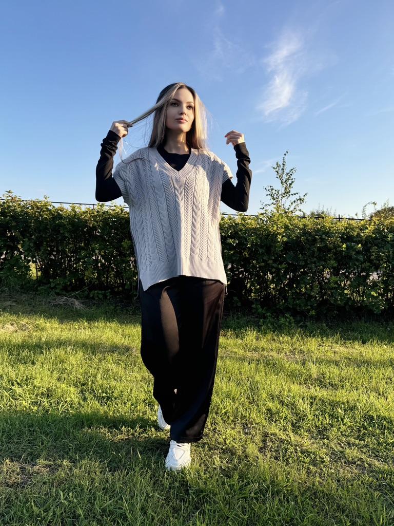 Двухцветная вязаная жилетка — стильный и универсальный предмет гардероба, который прекрасно подходит для создания как повседневных, так и более нарядных образов. 🔸У продавца вы найдете данную модель в нескольких расцветках, а вот размер универсальный. - Замеры жилетки: Длина - 65 (спереди) - 71 см (сзади) Ширина плеч - 73 см ОГ - 120-160 см - Мои параметры: Рост - 164 см ОГ - 86 см ОТ - 67 см ОБ - 95 см 🔸Жилет имеет привлекательный двухцветный дизайн, который позволяет легко сочетать его с различными верхами и нижней одеждой. 🔸Изделие изготовлено из мягкого и теплого материала, в составе которого вискоза и акрил. Вязаная текстура придаёт изделию объём и уют, а также хорошо выглядит в разных ракурсах. 🔸Размер One size обеспечивает свободу движения и подходит для большинства типов фигур. Жилет можно носить как на голое тело, так и поверх водолазок и рубашек. Это делает его идеальным для многослойных образов в холодное время года. 🔸Двухцветная жилетка отлично подходит как для работы, так и для отдыха. Её можно сочетать с джинсами, брюками, юбками или даже платьями. При этом жилетка может стать ярким акцентом в вашем образе или дополнением к более сдержанному наряду. Рекомендую 👍 Ставлю ⭐⭐⭐⭐⭐ Большое спасибо продавцу ❤️ и Joom ❤️