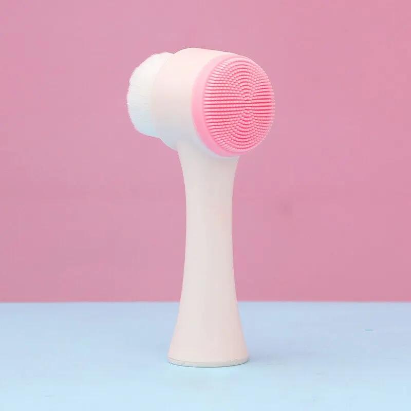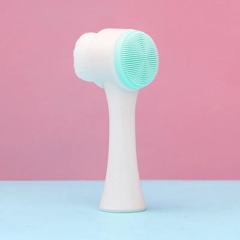 3D Двойная силиконовая очищающая щетка для лица, ручная массажная очищающая щетка для лица, отшелушивающая щетка для удаления пор, скраб для умывания