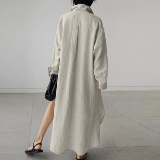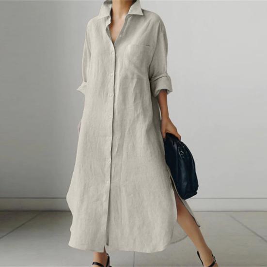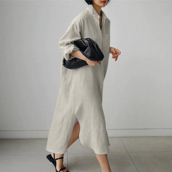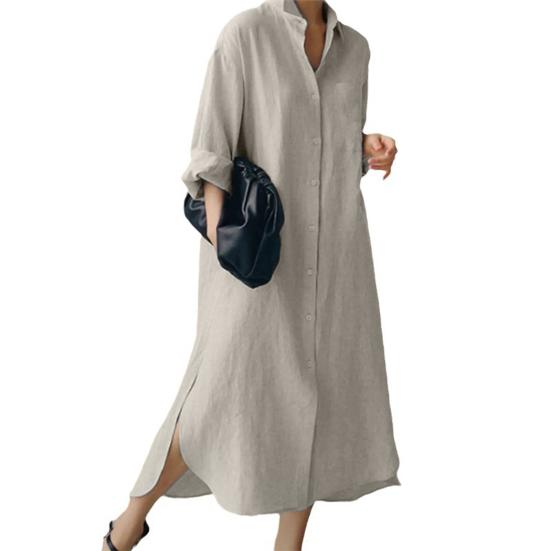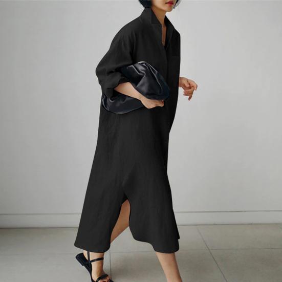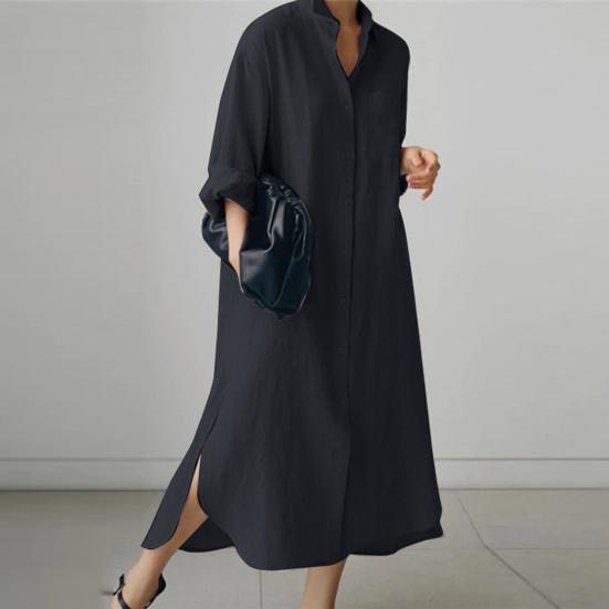 Представляем наше универсальное и стильное женское платье-рубашку с длинными лацканами, которое идеально подойдет для любого случая.. Это платье из смеси хлопка и спандекса обеспечивает непринужденную свободную посадку из удобной и легкой ткани, которую вы будете носить с удовольствием весь день..
