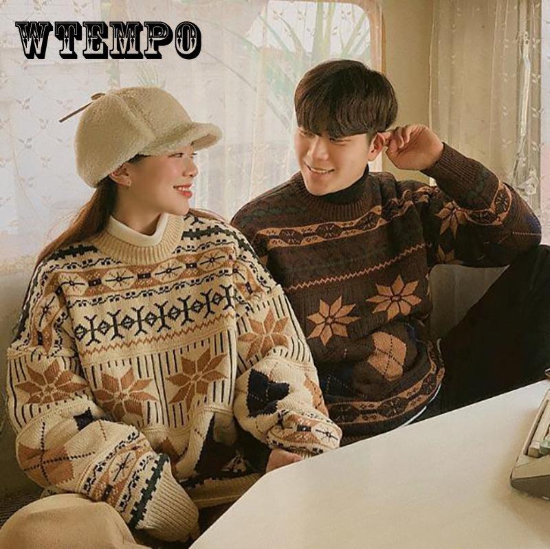 WTEMPO Свитер для пар, мягкий повседневный вязаный свитер, зимний теплый пуловер, свитер с круглым вырезом в стиле ретро