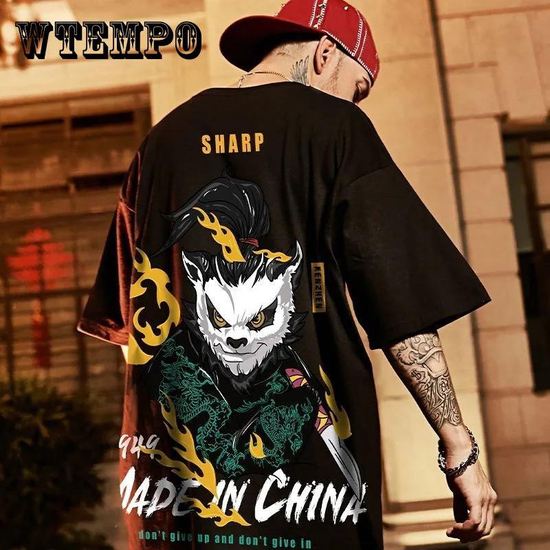 Плюс размер Панда с короткими рукавами Модная футболка в стиле хип-хоп