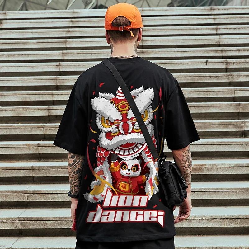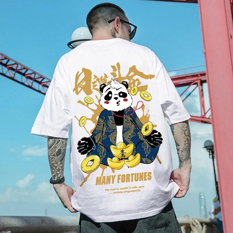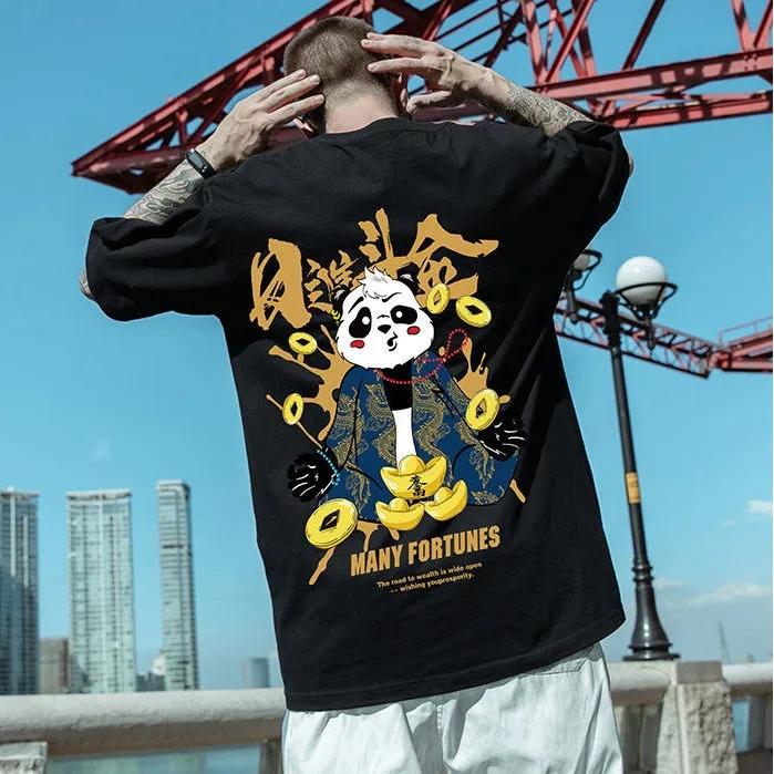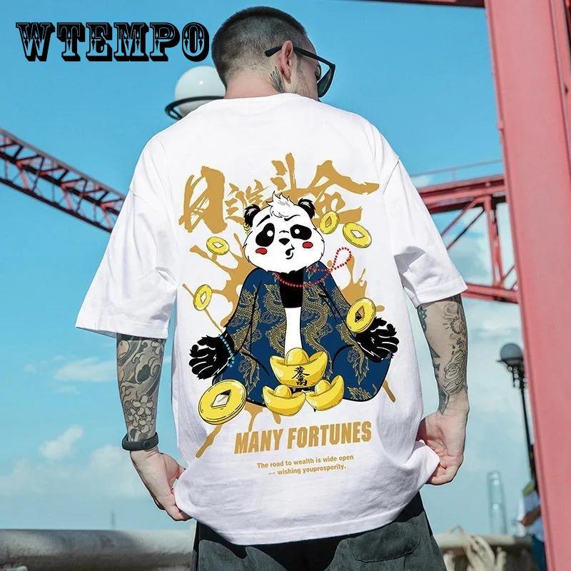 Мужская футболка в национальном стиле в форме панды с круглым вырезом и короткими рукавами, свободный топ с короткими рукавами