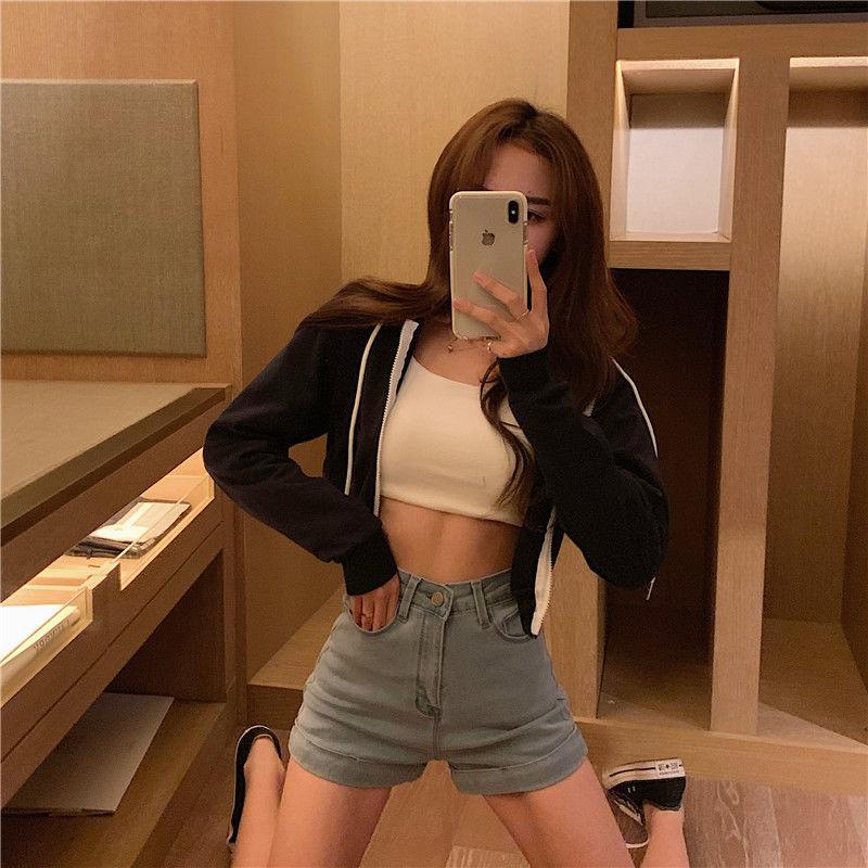 Новая весенне-осенняя корейская версия, короткое пальто с капюшоном на молнии, тонкий однотонный женский свитер — купить товар онлайн с бесплатной доставкой по всему миру!