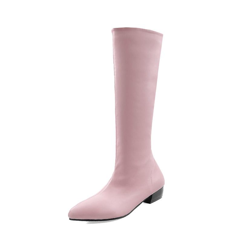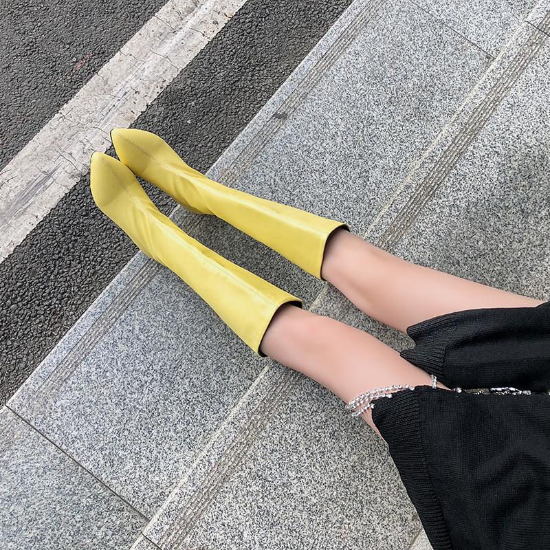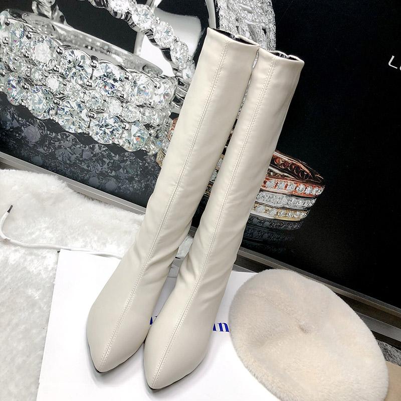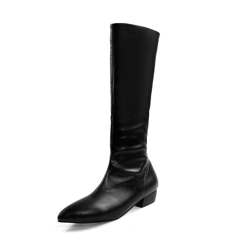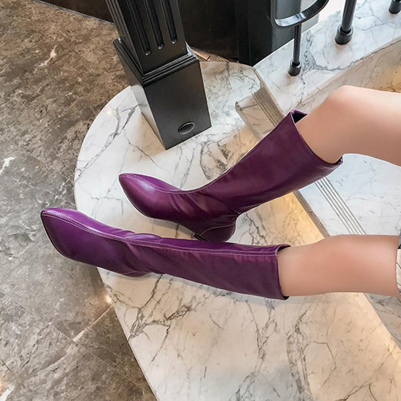 Женские длинные сапоги на низком каблуке, осенне-зимняя новинка, однотонные длинные сапоги с острым носком на толстом каблуке, большие размеры