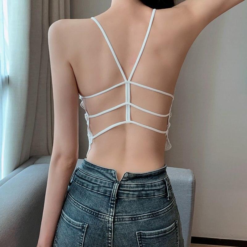 Сексуальные укороченные топы с кружевным цветком и бретелькой на бретельках, женская летняя майка с открытой спиной, бретелька с открытой спиной, повседневная трубка, женский жилет без рукавов