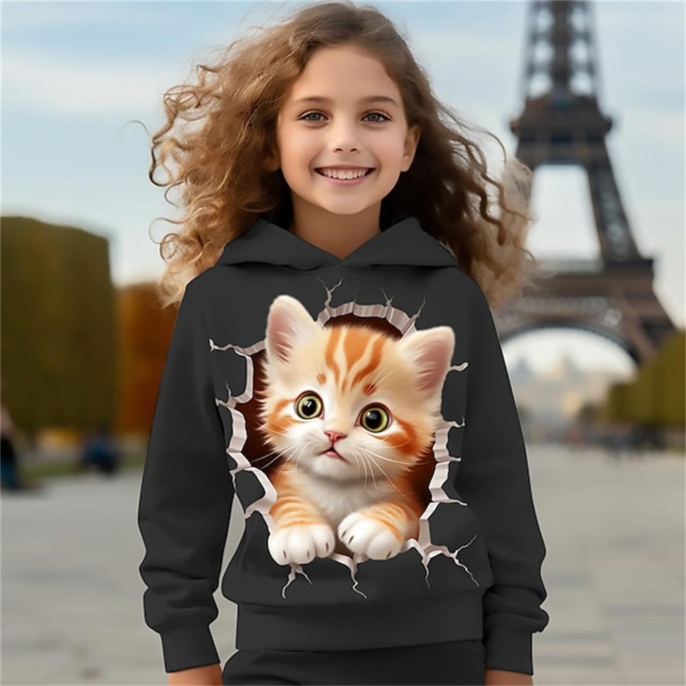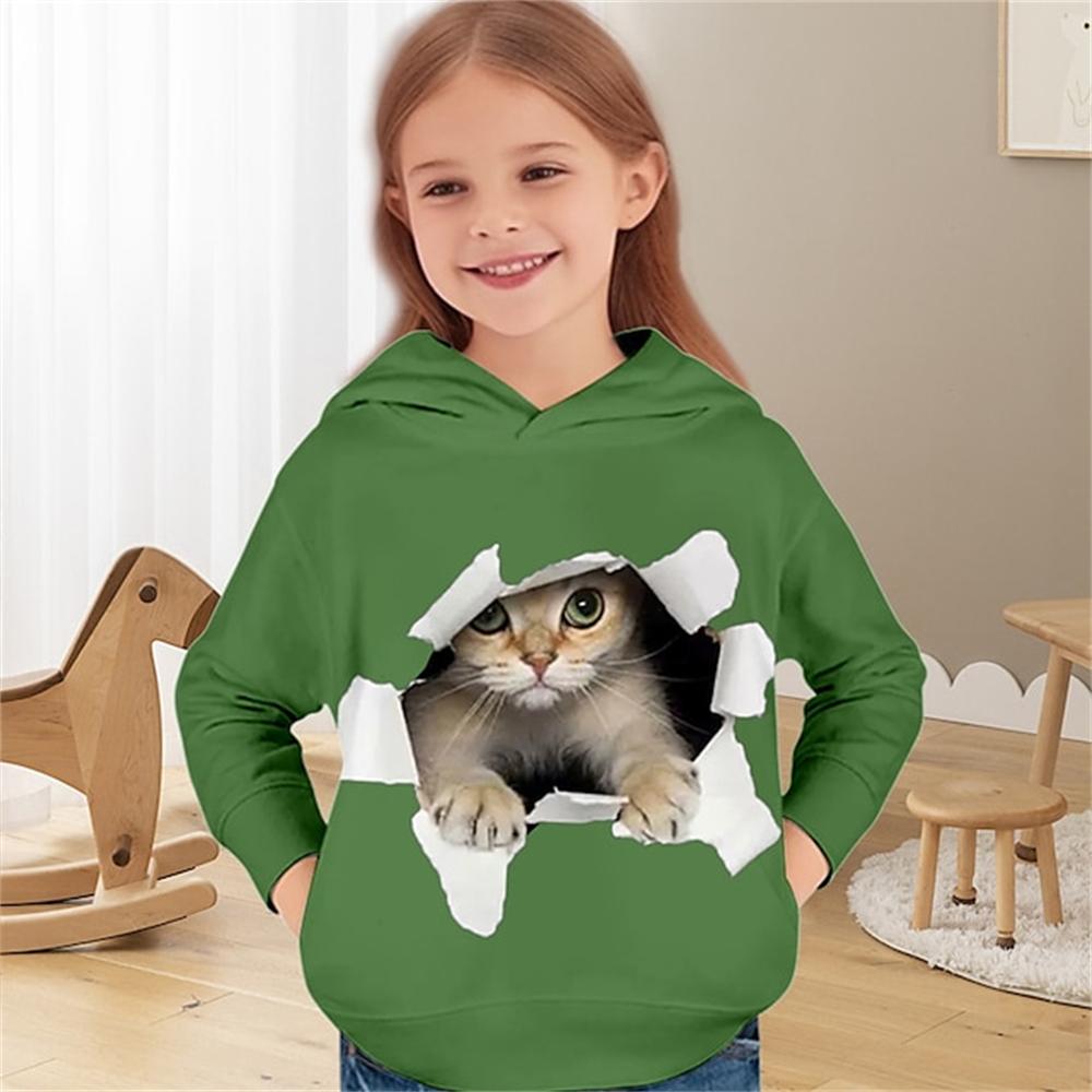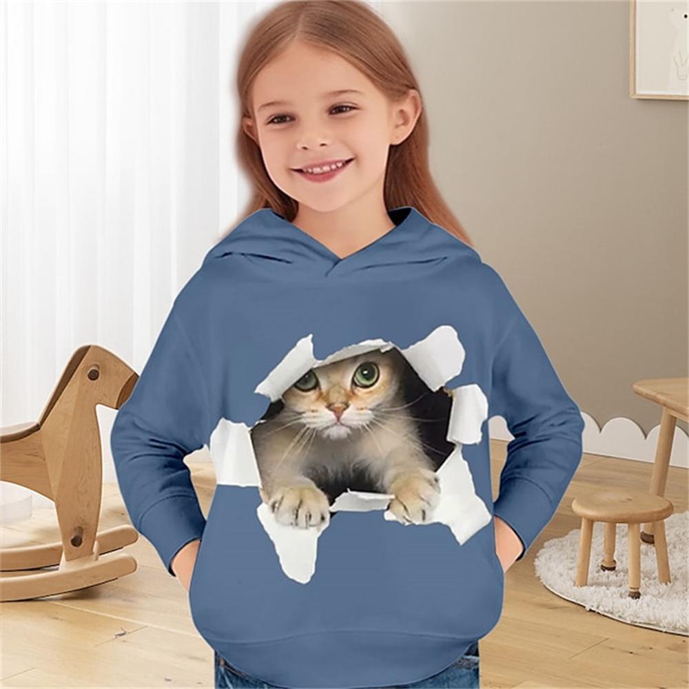 2024 Детская одежда Толстовки с капюшоном с изображением кошек Верхняя одежда для девочек от 2 до 8 лет Весенняя мода 3D-принт Детские топы с длинными рукавами