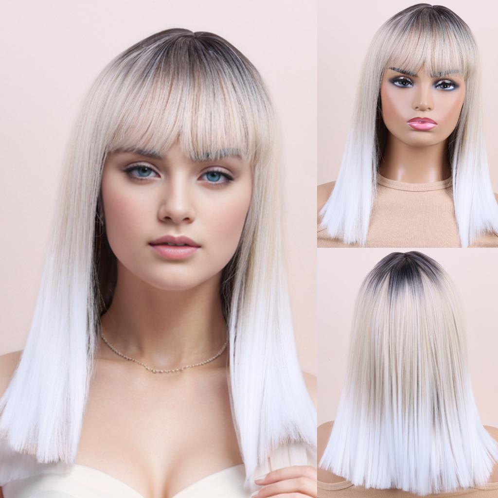 Синтетические светлые коричневые белые красные парики с челкой короткие прямые парики для женщин ежедневный косплей натуральный парик из термостойкого волокна