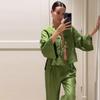 Свободные комплекты женские летние блузки с V-образным вырезом и шнуровкой, длинные рукава, широкие брюки, винтажные зеленые женские брюки, костюм