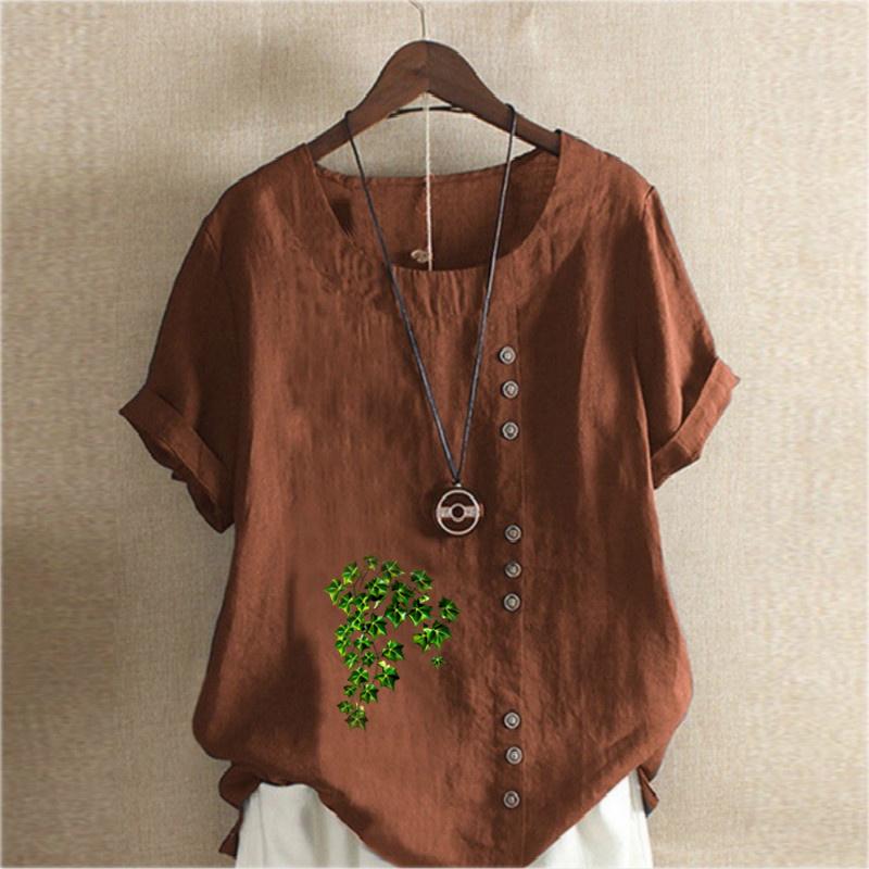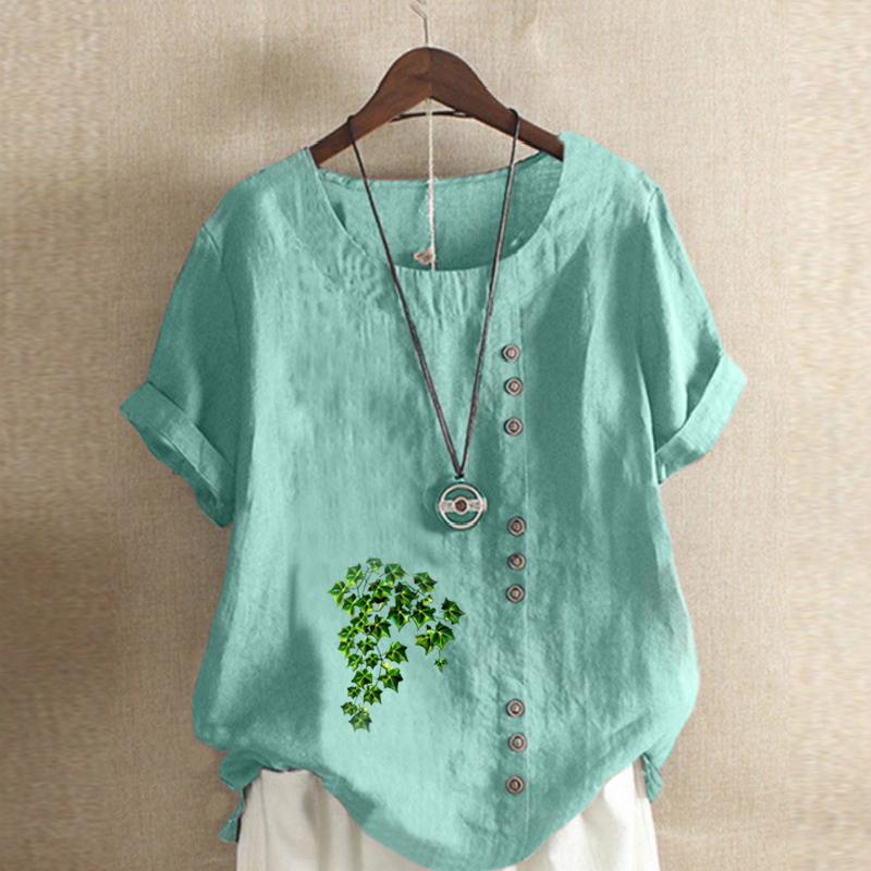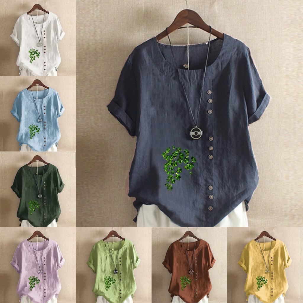 Женская модная футболка с круглым вырезом и коротким рукавом, повседневная хлопково-льняная футболка с графическим принтом, летняя блузка, топы, большие размеры