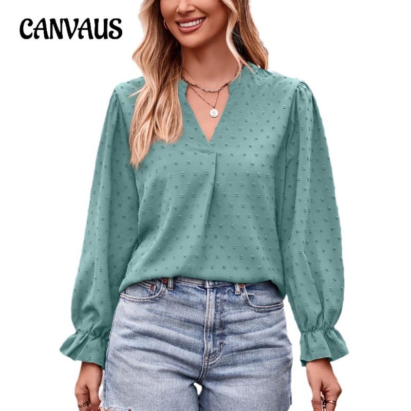 Весенне-осенняя женская блузка, жаккардовая рубашка с v-образным вырезом, свободные топы с длинными рукавами