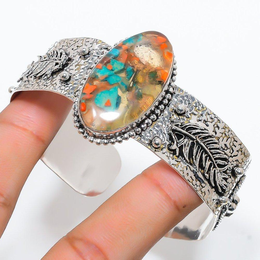 Драгоценный камень Спини Ойстер Ручной работы Серебро 925 пробы Манжета-браслет Регулируемый n4B20