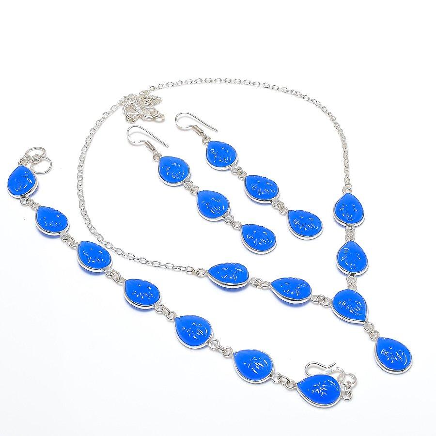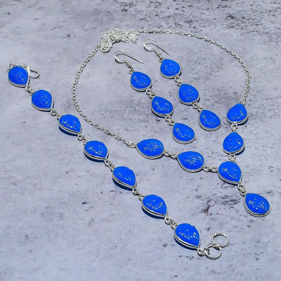 Комплект ювелирных изделий из серебра 925 пробы с синим халцедоном и драгоценными камнями V0d25