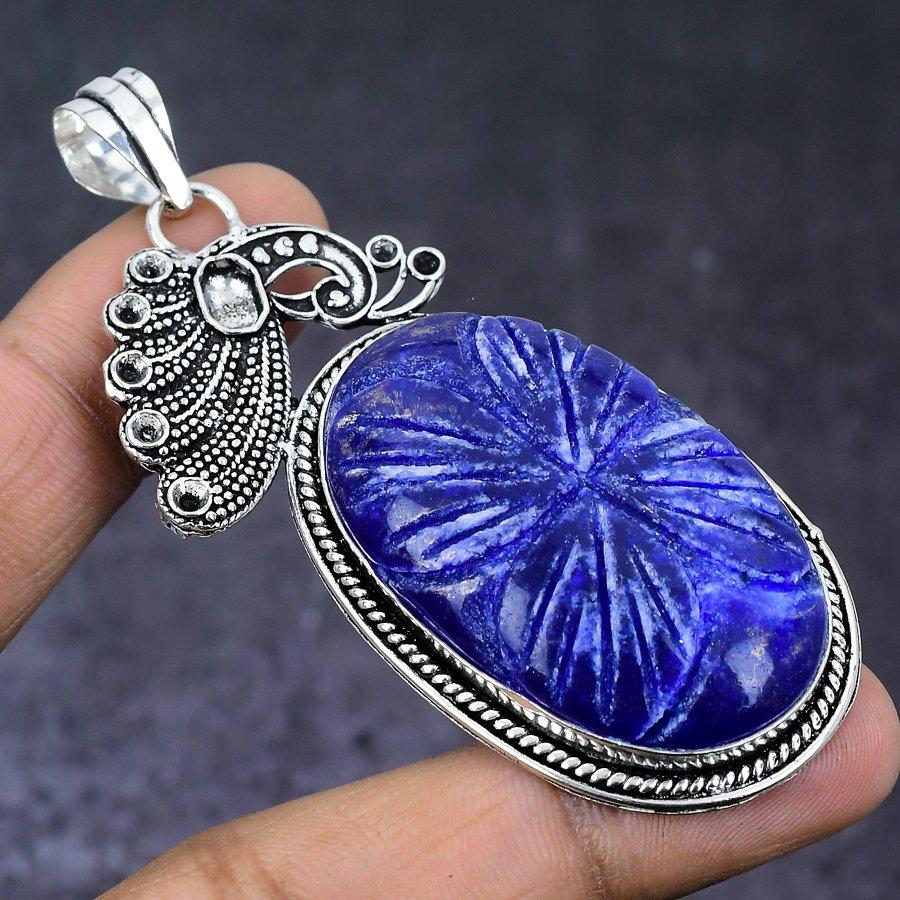 Бирманский Сапфир Драгоценный камень 925 Стерлинговое Серебро Ювелирный Подвеска 2,96" n3a74