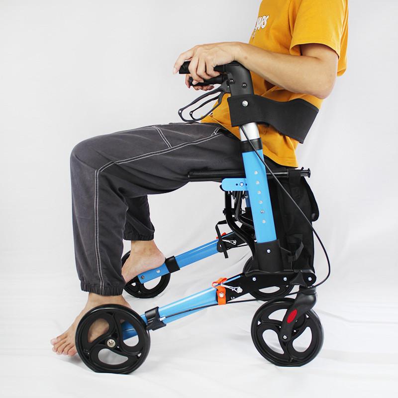 Четырехколесное средство для ходьбы для пожилых людей Тележка для покупок с регулируемой высотой и сумкой для хранения Бытовые средства для ходьбы с тормозами и расширенными подушками сиденья