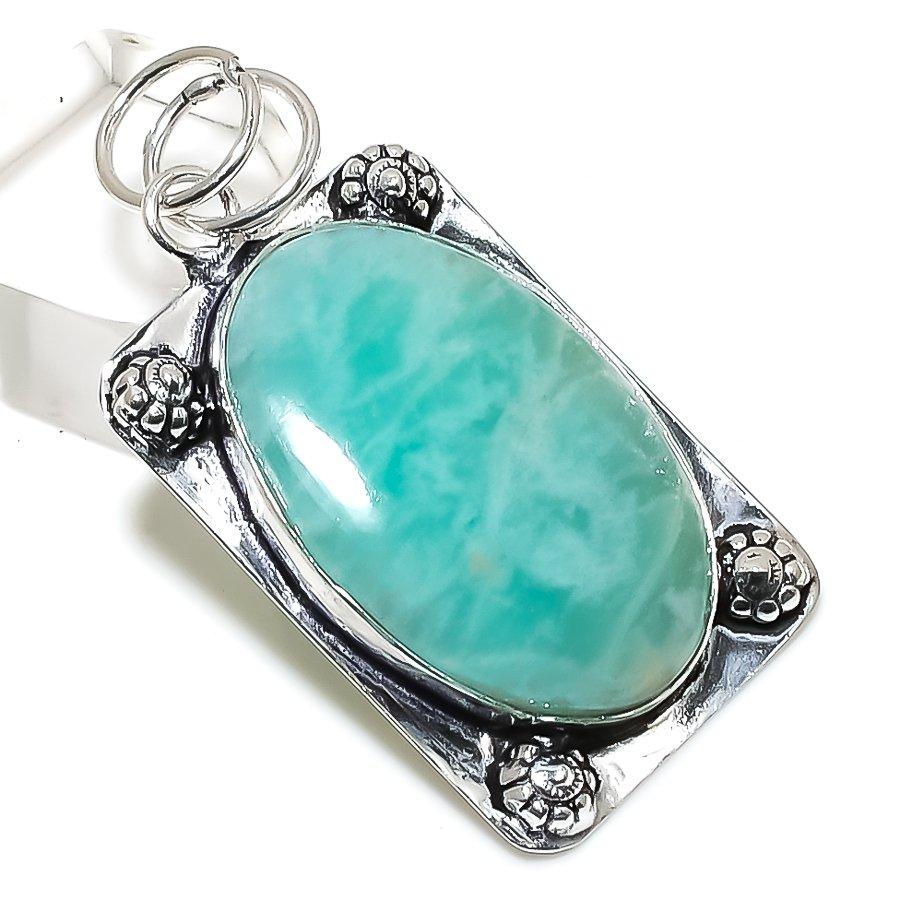 Amazonite Gemstone Handmade 925 Sterling Silver Jewelry Gift Pendant 2.05" f1P75