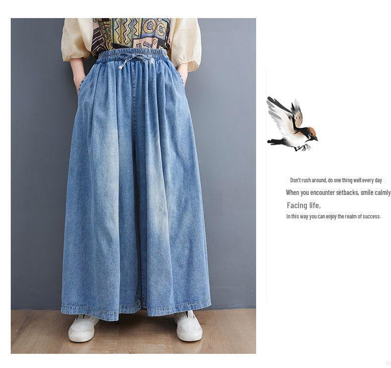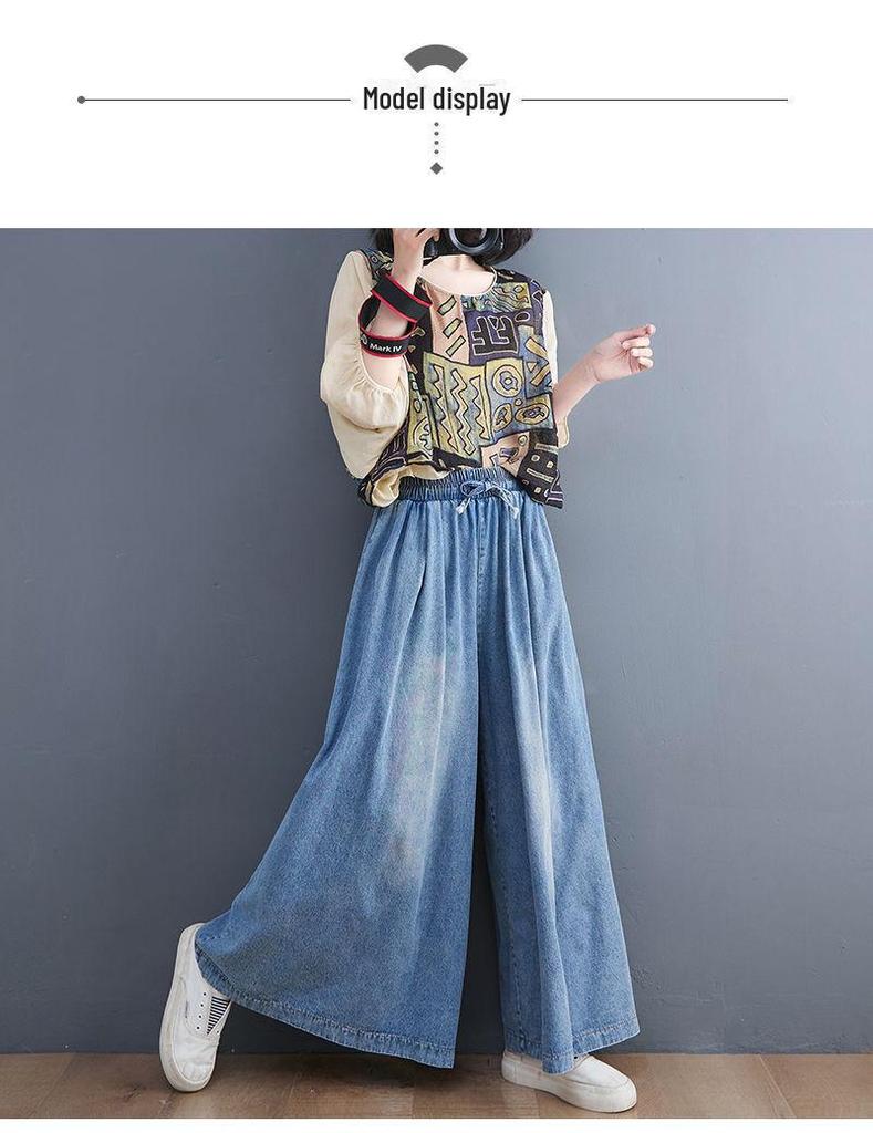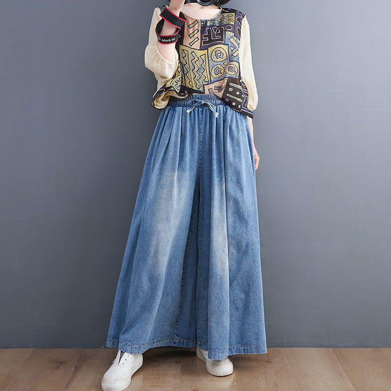 Летние модные джинсы широкого кроя: Свободный, высококачественный, в стиле ретро, приятный к телу, эластичный пояс.