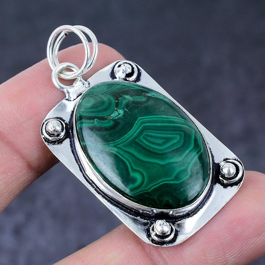 Подвеска из серебра 925 пробы с драгоценным камнем малахит, ручная работа, 2,01 дюйма