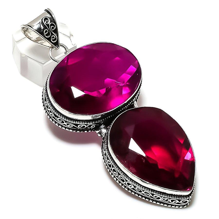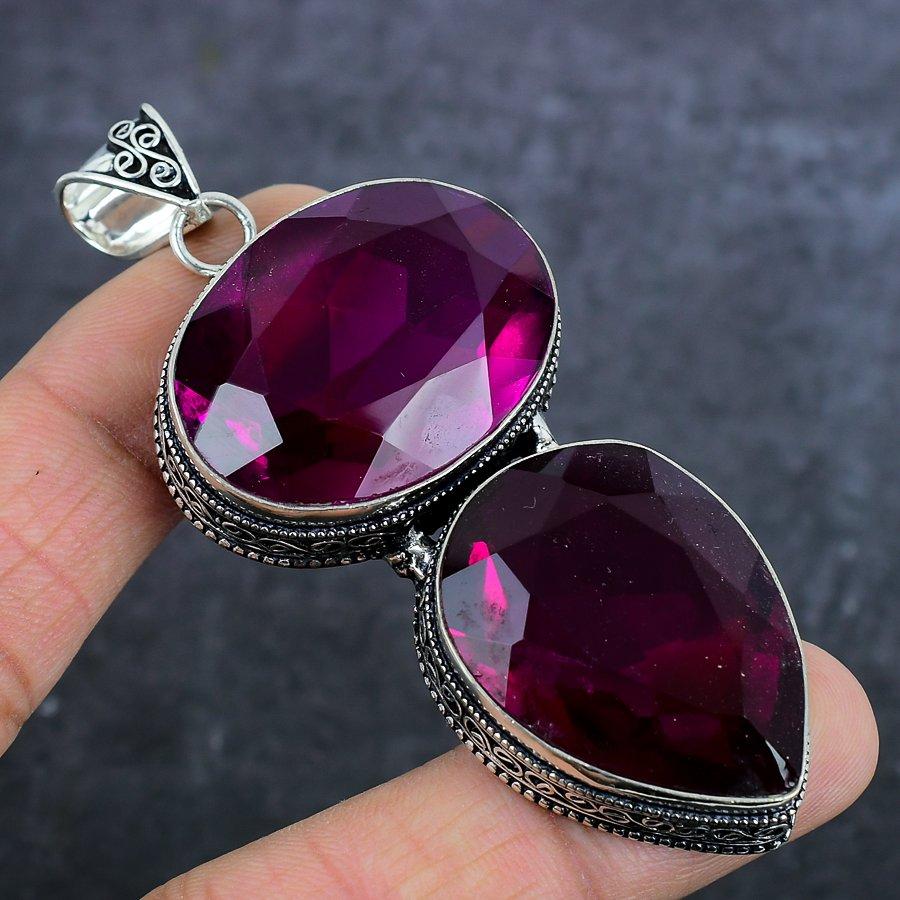Amethyst Gemstone Handmade 925 Sterling Silver Jewelry Pendant 3.27" v8S91