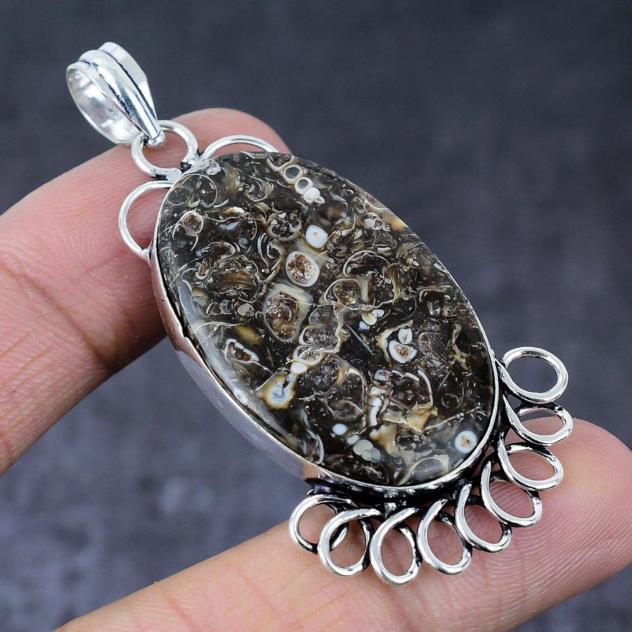 Туртилла Ископаемый Драгоценный Камень Ручной Работы 925 Стерлинговое Серебро Ювелирное Изделие Подвеска 2,48"