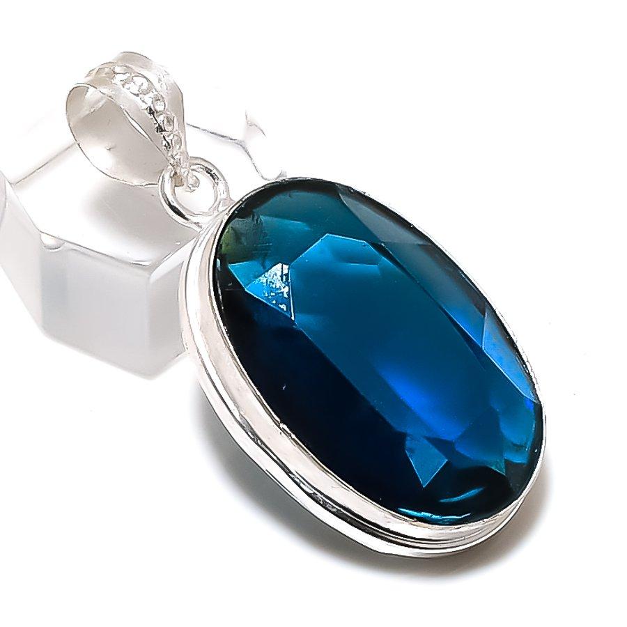 Подвеска ручной работы из стерлингового серебра 925 пробы с драгоценным камнем London Blue Topaz 1,81 дюйма