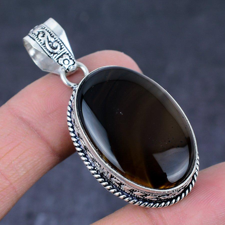 Montana Agate Gemstone Handmade 925 Sterling Silver Jewelry Pendant 2.01" e7G40