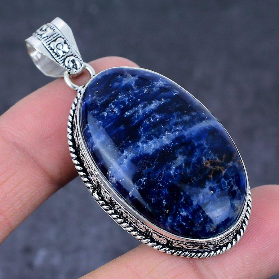 Sodalite Gemstone Handmade 925 Sterling Silver Gift Jewelry Pendant 2.29" Y7g07