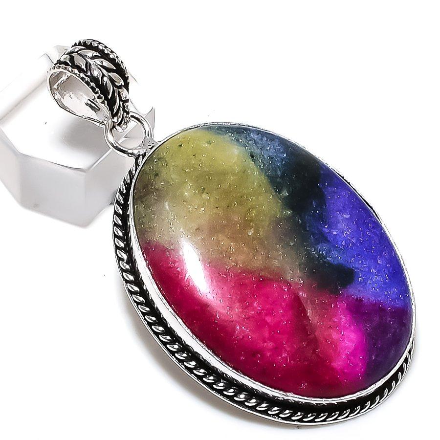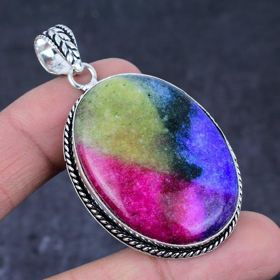 Подвеска из серебра 925 пробы с радужным солнечным кварцем, ручная работа, 2,40 дюйма