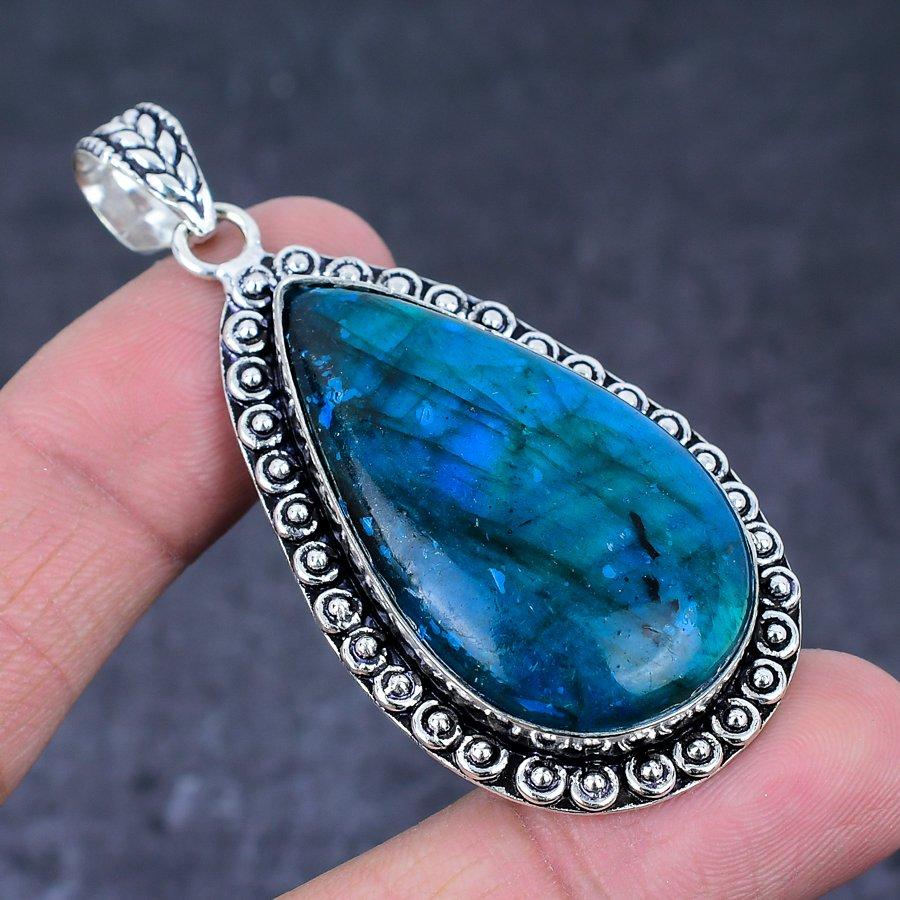 Blue Labradorite Gemstone Handmade 925 Sterling Silver Gift Pendant 2.64" v2m98