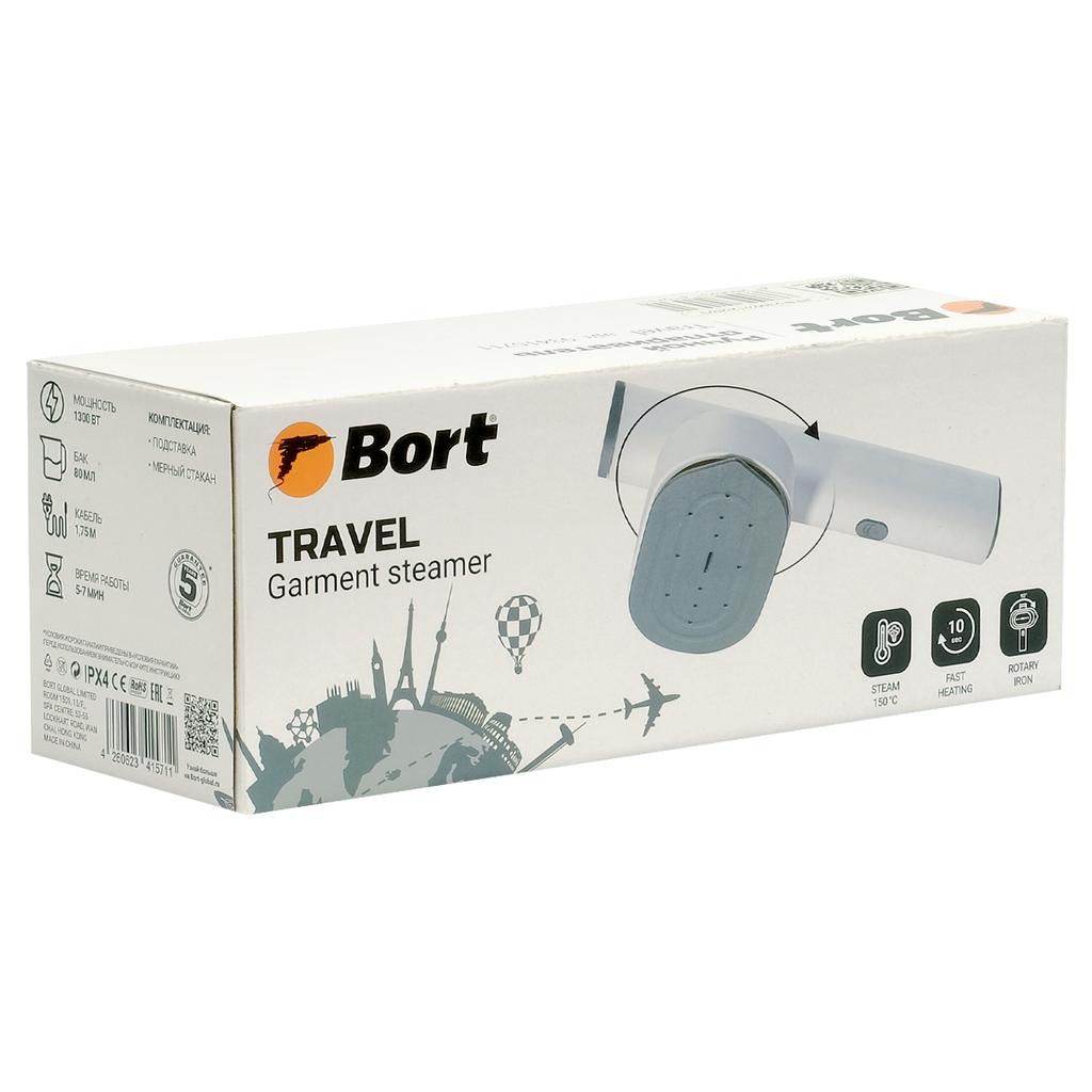 Отпариватель Bort Travel — ваш идеальный спутник в путешествиях! Дорожный отпариватель Bort — оптимальное решение для тех, кто ценит безупречный стиль в любой точке мира. Это компактное, но мощное устройство сочетает в себе удобство дорожного утюга и высокую эффективность отпаривателя, позволяя вам всегда выглядеть наилучшим образом.. При включении отпариватель мгновенно готов к работе всего за 10 секунд. Съемный резервуар на 80 мл обеспечивает непрерывную работу в течение 7 минут, чего достаточно, чтобы привести свой образ в порядок перед важной встречей или вечером.. Благодаря своим компактным размерам, пароварка займет минимум места в вашем чемодане.. Легкость отпаривателя позволит положить его даже в рюкзак или ручную кладь без превышения норм веса.. Керамическая подошва утюга обеспечивает легкое скольжение по ткани, в отличие от металлических подошв. Это не только повышает эффективность глажки, но и снижает риск повреждения материалов.