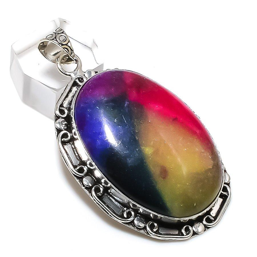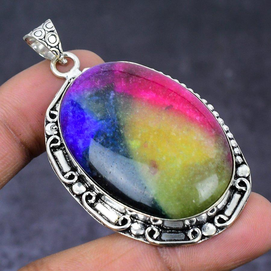 Радужный солнечный кварц драгоценный камень 925 стерлинговое серебро ювелирное изделие кулон 2,40" M8b69