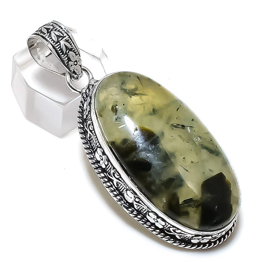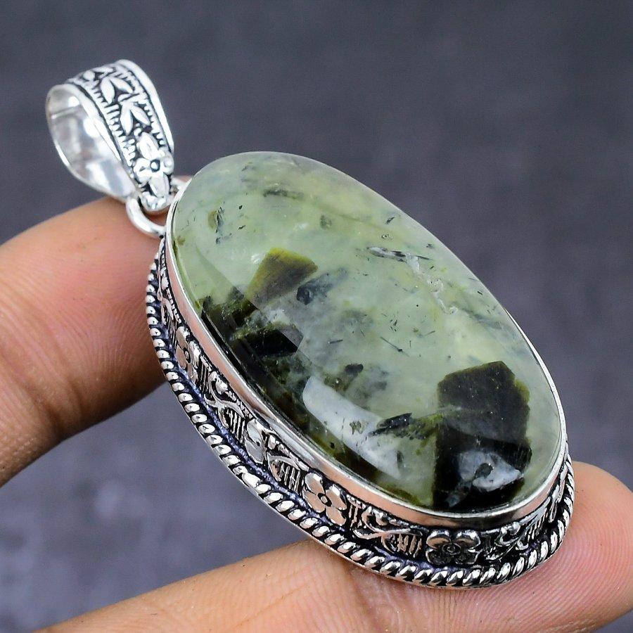 Пренит Драгоценный камень 925 Стерлинговое серебро Ювелирная подвеска 2,36" Y3g83