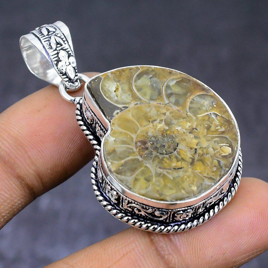 Ammonite Fossil Gemstone 925 Steling Silver Jewelry Pendant 1.97" O4D86
