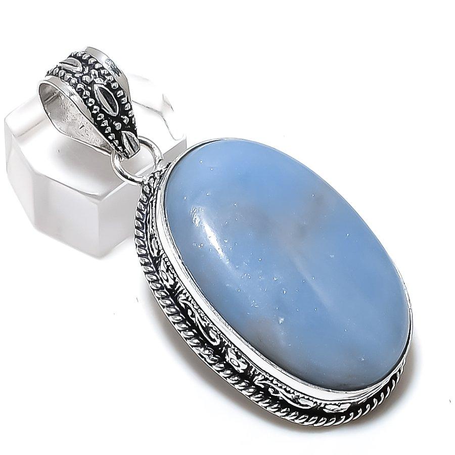 Камень Ангелит Драгоценный камень 925 Стерлинговое серебро Ювелирное изделие Кулон 2.17" t1y36