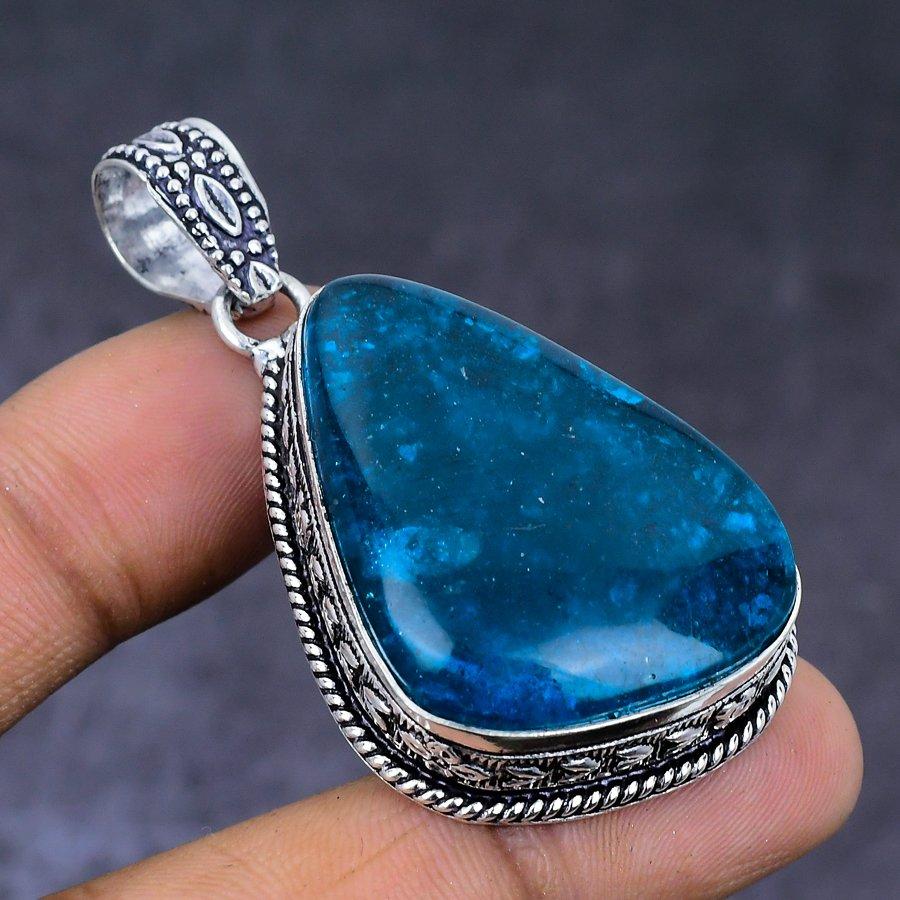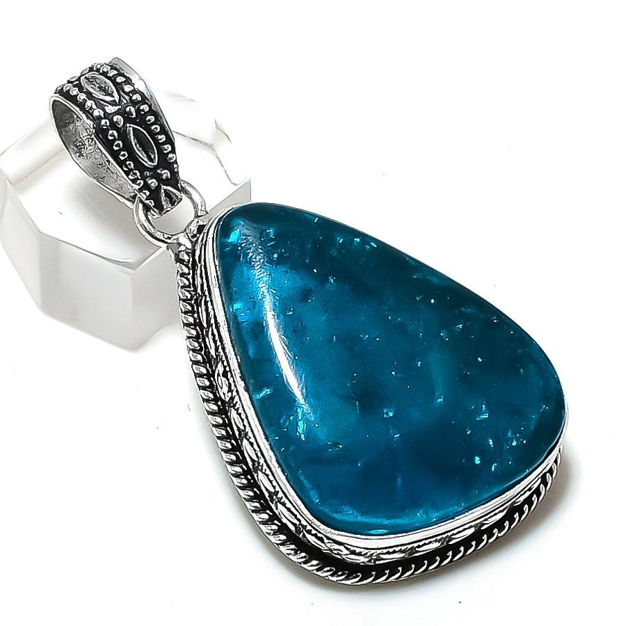 Подвеска из серебра 925 пробы с синим янтарем и драгоценным камнем 2,05 дюйма U9f61