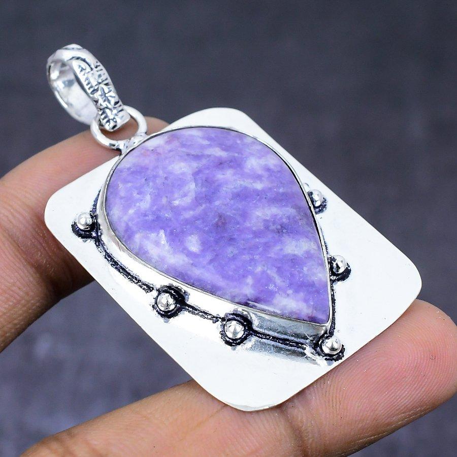 Lepidolite Gemstone 925 Steling Silver Jewelry Pendant 2.25" H2w71