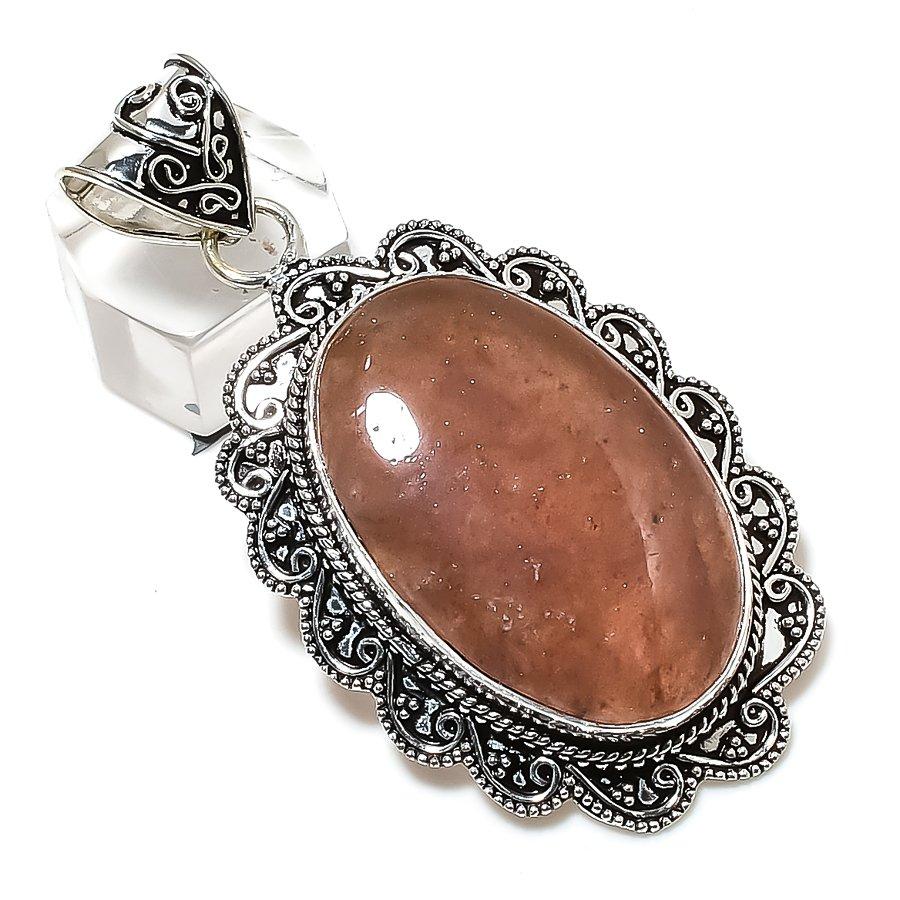 Подвеска из серебра 925 пробы с драгоценным камнем «Кварц клубники» 2,56 дюйма