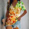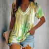Женская новая футболка с короткими рукавами и V-образным вырезом, цветной принт, короткий рукав, свободный женский топ, дышащая футболка в стиле Y2K