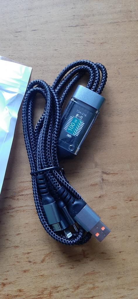 В описании товара представлена откровенная ложь о товаре. Во первых, через час после распаковки товара отвалилась металлическая часть (элипсообразное кольцо) разъёма (штекера) USB, которое вставляется в адаптер (в зарядное устройство). На фото указано стрелкой. Во вторых, никакой потребляемой мощности на "дисплей" не показывает, это просто надпись 100 Вт, и изображении микросхемы, никакой функции не выполняет. Только светится синий светодиод (индикатор), который сигнализирует, что кабель подключен к адаптеру. В третьих, и САМОЕ ГЛАВНОЕ, кабель нНЕ ОБЕСПЕЧИВАЕТ ЗАРЯДКУ с указанной 100 % мощностью от заведомо проверенного адаптера, который способен "отдать" в аккумулятор телефона такой ток. Лично провёл тестирование. Пример: "родной", если угодно по другому заводской адаптер (зарядное) с заводским кабелем от адаптер до телефона обеспечивает 1% заряда аккумулятора телефона за 1,5 минуты. При использовании приобретённого кабеля о котором идёт речь, 1% заряда аккумулятора обеспечивается за 7 минут, т.е. в 4.6 раз МЕДЛЕННЕЕ! можете подсчитать, сколько будет заряжаться телефон. Обращаю внимание, что при зарядке с кабелем, который "пришел" всё остальные компоненты остались прежние: тот же телефон, тот же адаптер (зарядное) та же розетка 220В. Всё дело в кабеле. ВЫВОД кабель барахло, не способен "пропустить" даже то количество электричества, которое способен отдать адаптер. Скорее всего, сечение кабеля очень маленькое, или качество меди ,(сплава) очень плохое. Делайте вывод, стоит ли приобретать такое г...о! P.S.Вопрос, как появились хвалебные отзывы по пять звёзд?