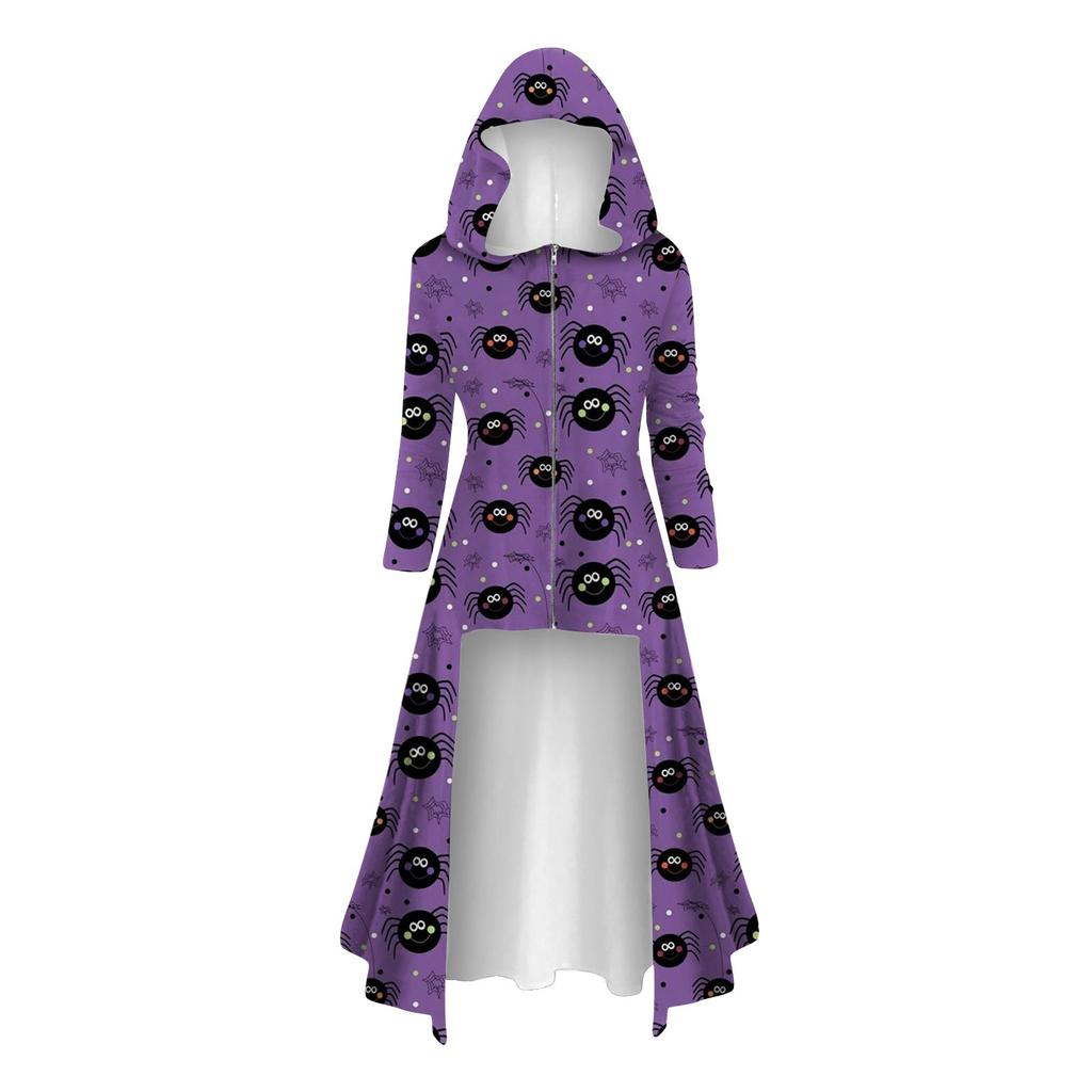 Модные женские топы на Хэллоуин с длинными рукавами и длинными капюшонами, винтажные накидки на молнии, свободные платья