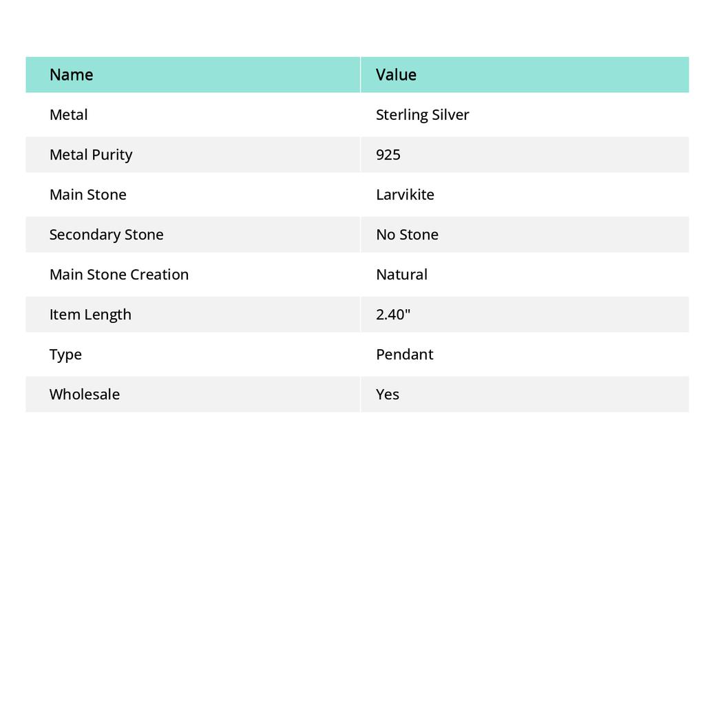 Larvikite Stone Gemstone Handmade 925 Sterling Silver Jewelry Pendant 2.40" D2h58